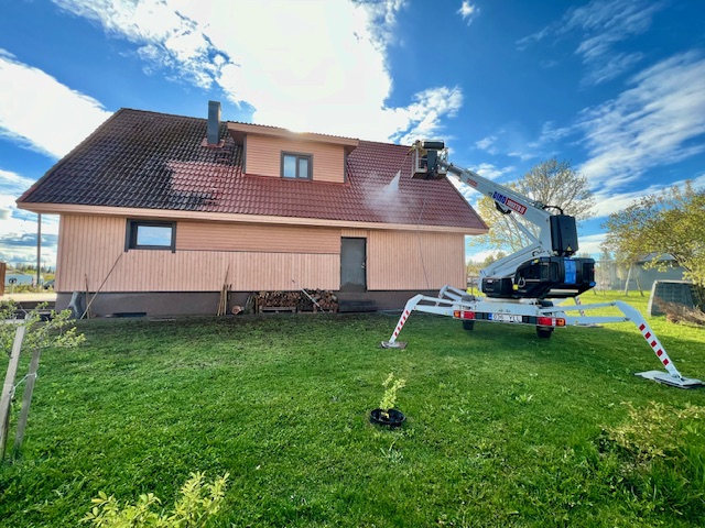 Suosittelemme kattojen ja julkisivujen huoltopesua noin viiden vuoden välein. Säännöllinen puhdistus estää pintojen likaantumisen sekä suojaa niitä levä-, sammal- ja homekasvustoilta, jotka voivat ajan myötä aiheuttaa vaurioita rakenteisiin ja lyhentää pintamateriaalien käyttöikää.